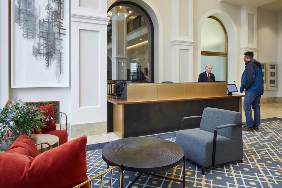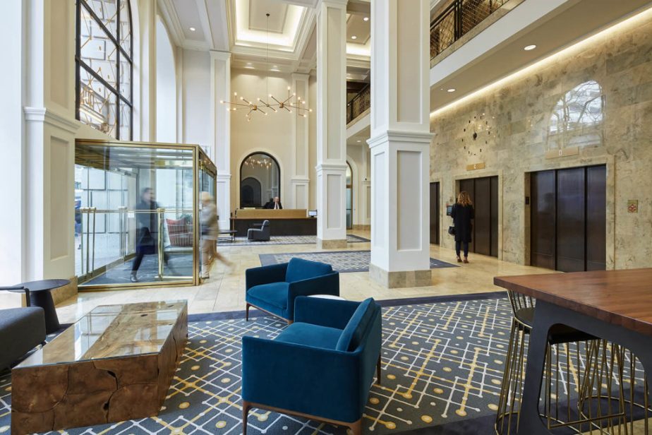 Identity, interior and exterior building signage, wayfinding, and environmental graphics for historic skyscraper